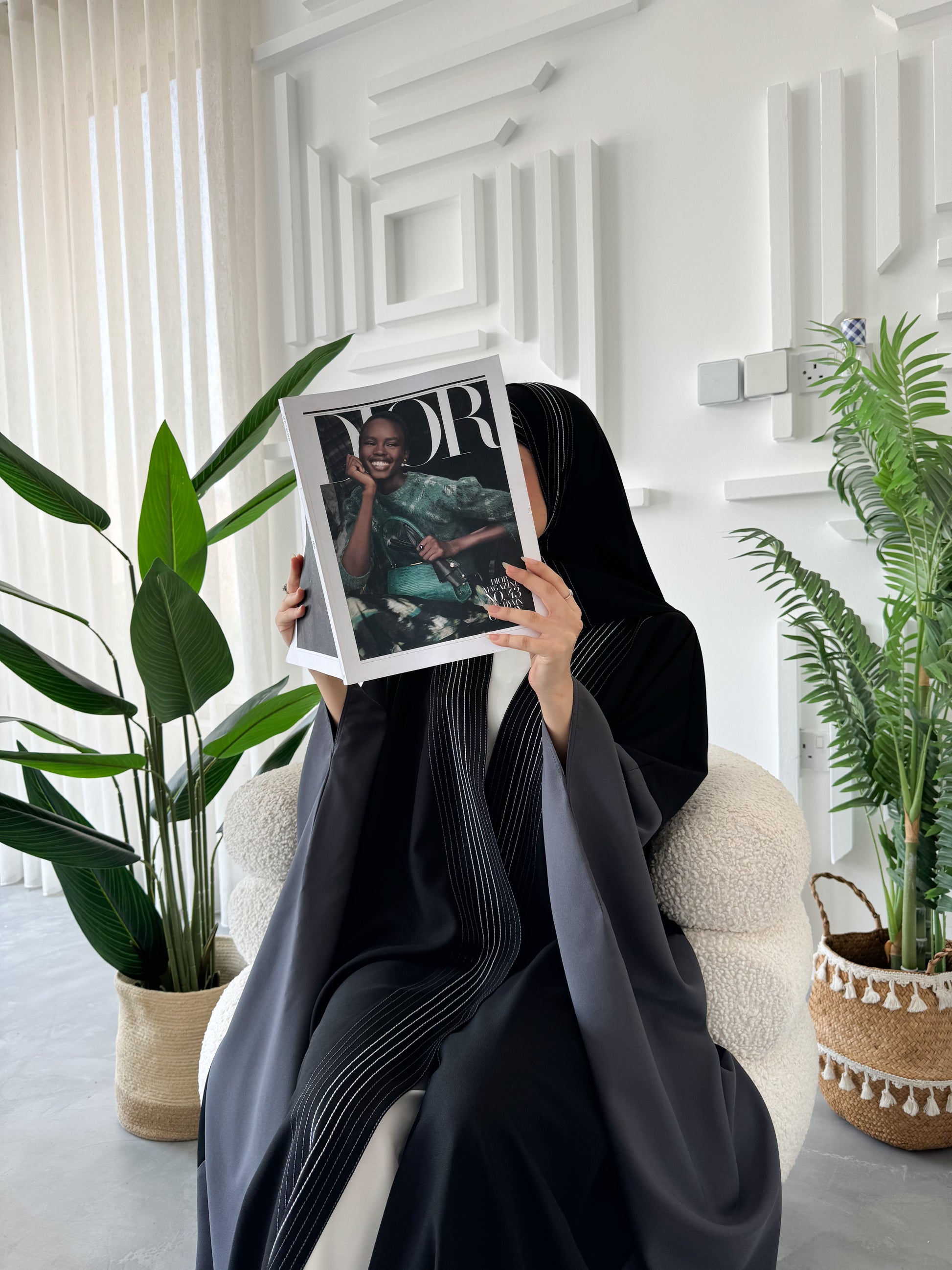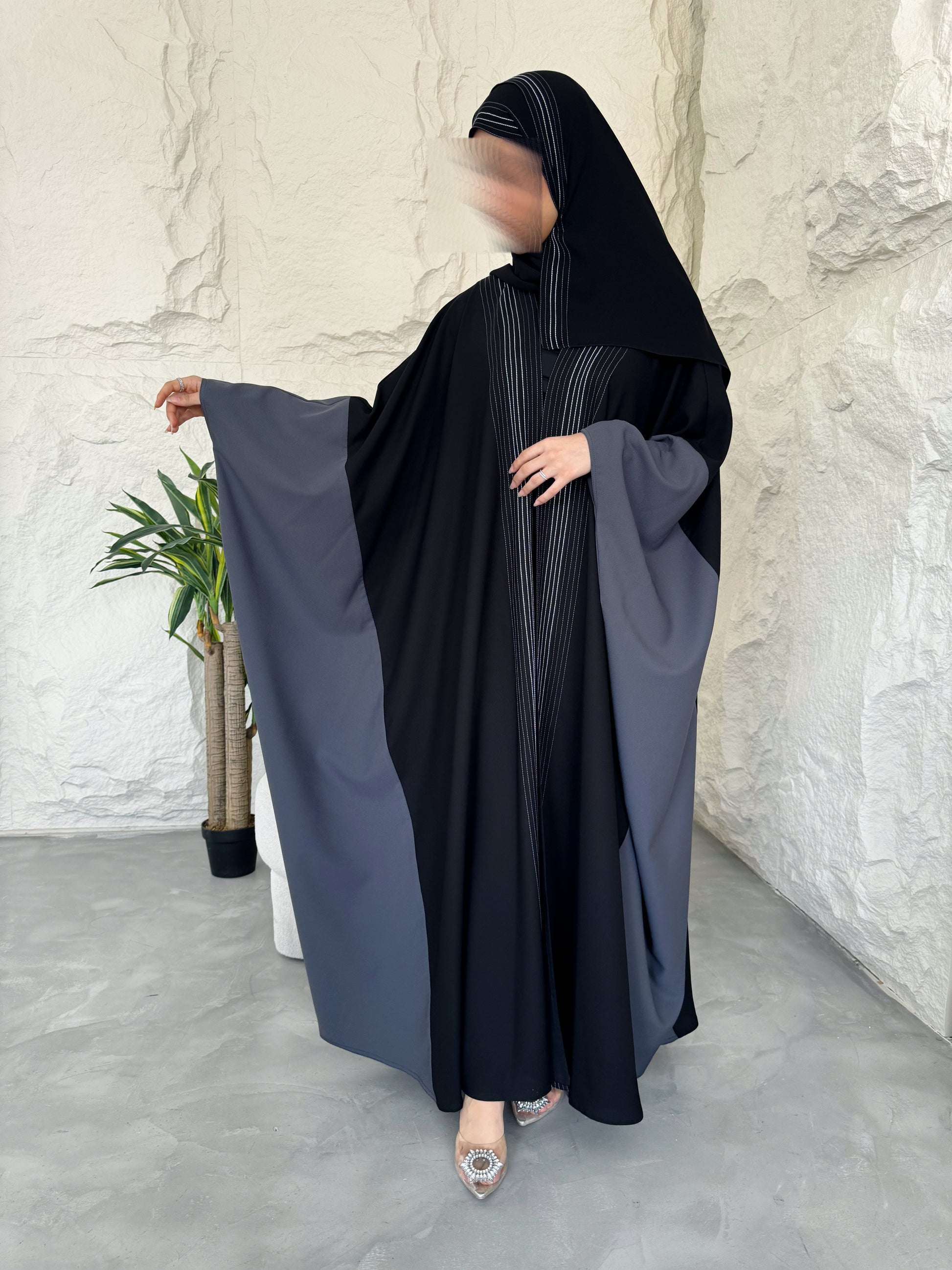 عباية أنيقة بموديل بشت مع تطريز باللونين