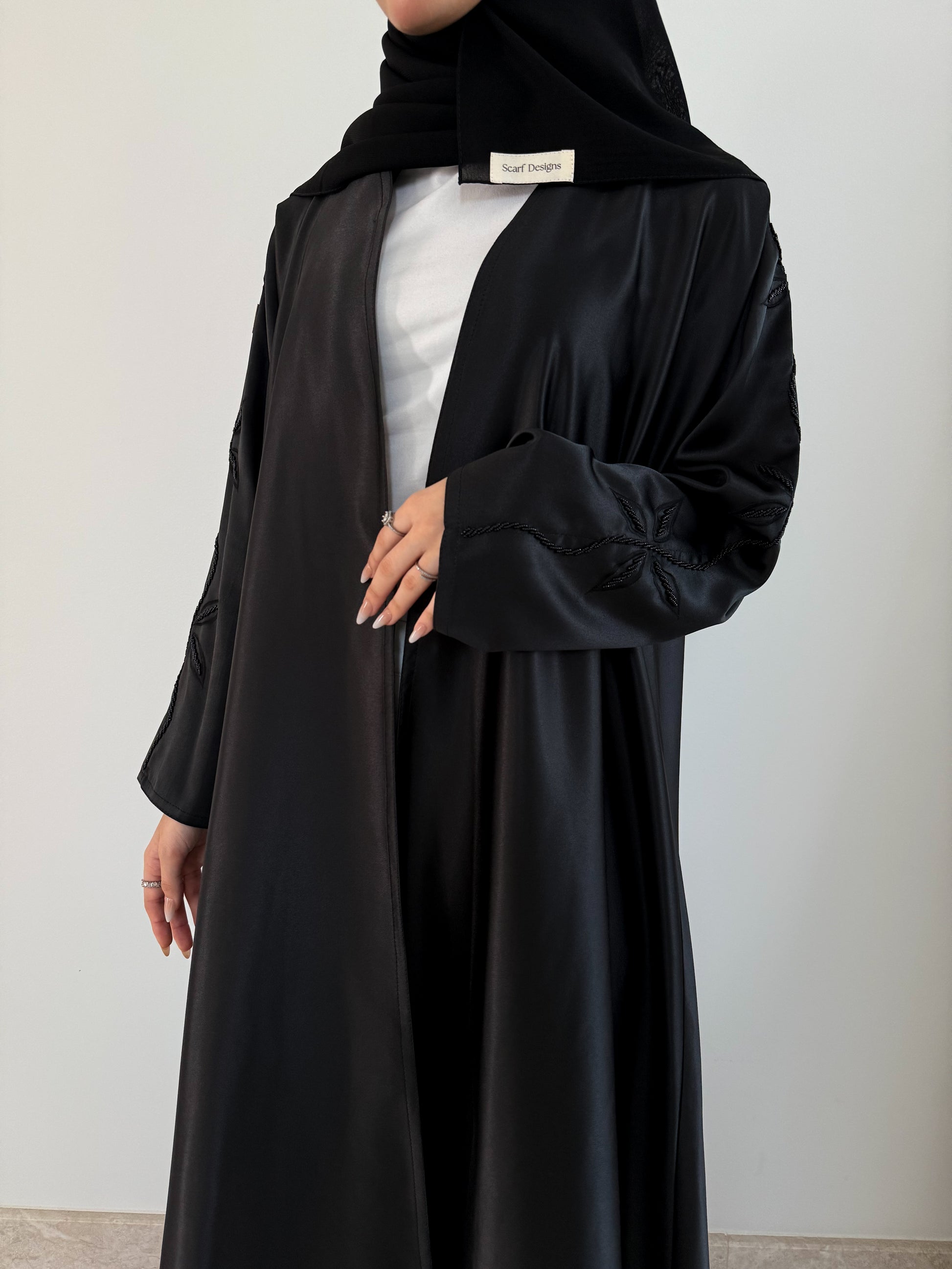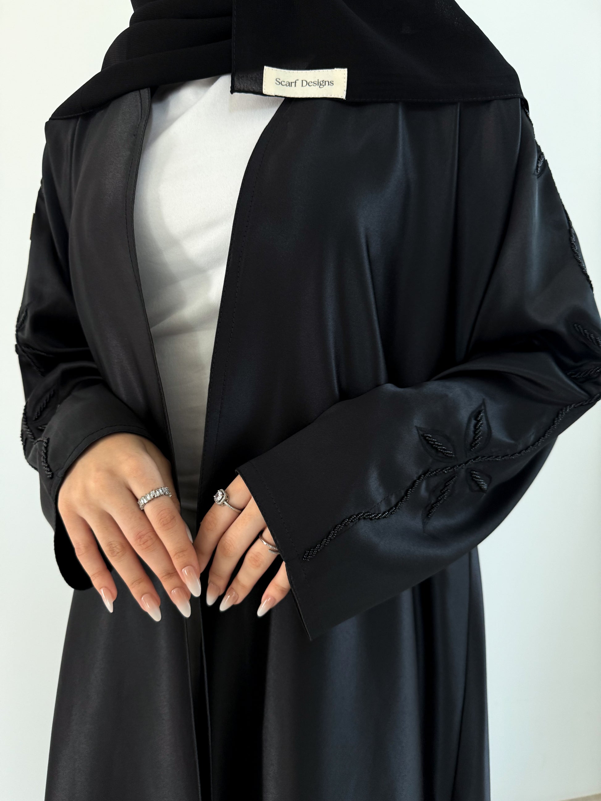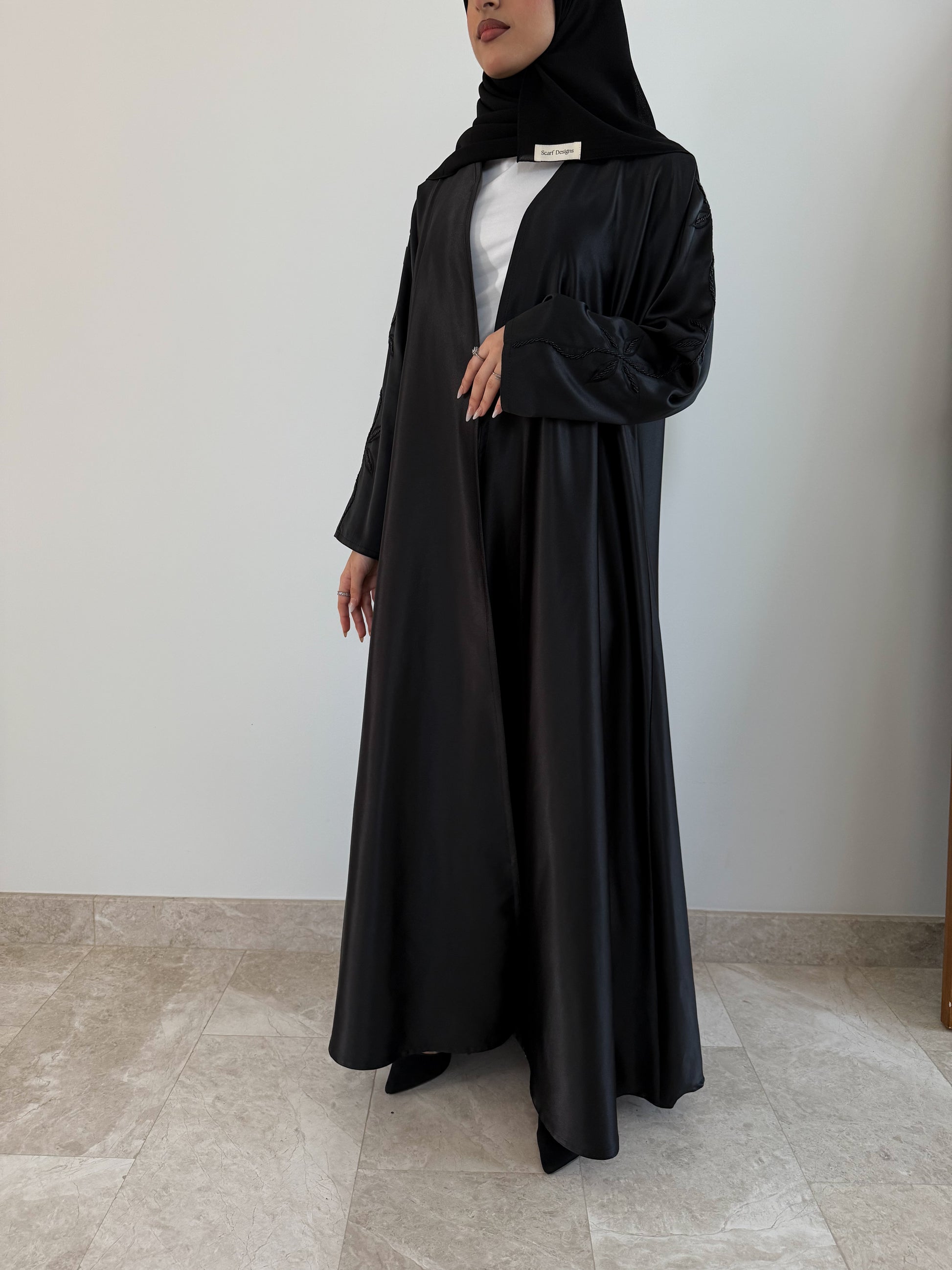 عباية أنيقة و مميزة بتصميم أنيق في الكُم تطريز يدوي و شك يدوي